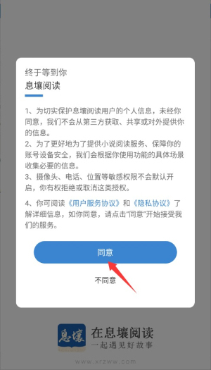 1、首次启动应用时,系统会显示用户协议和隐私政策,阅读后点击同意按钮进入主界面。