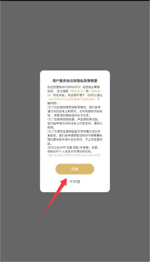1、首次启动应用时,系统会显示用户协议和隐私政策,阅读后点击同意按钮进入主界面。