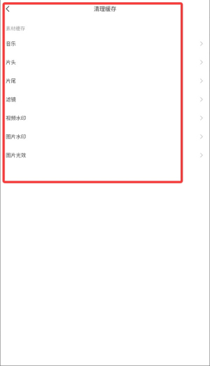 4、进入后,您可以选择清理“滤镜”、“素材包”或“临时文件”等不同类型的缓存数据。