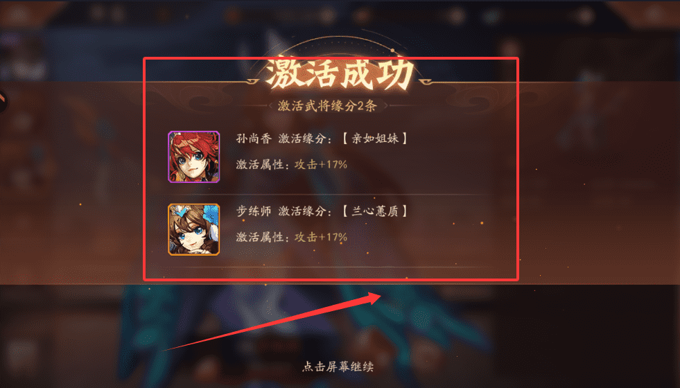 2、就能激活“亲如姐妹”或“兰心蕙质”这样的缘分,直接获得攻击力增加百分之十七的强大属性加成,这对战力提升帮助很大。