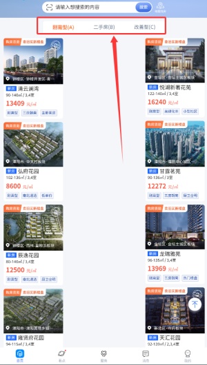 1、打开软件进入主界面后,根据需求点击选择您想查看的房源类型。