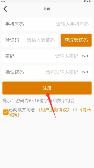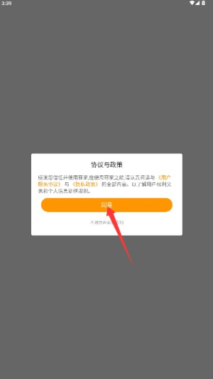 1、打开应用后仔细阅读用户协议和隐私政策,确认后点击同意按钮进入应用。