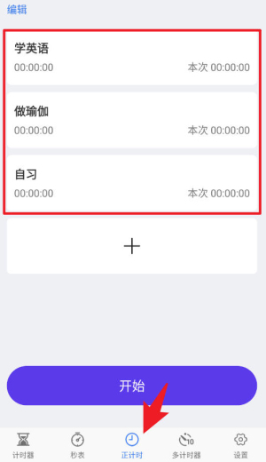 3、正计时界面可以创建学习、瑜伽、自习等不同项目,帮助用户区分记录各项任务的实际用时,方便后续统计与管理。