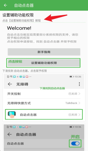 2、新手指南将引导用户开启辅助功能权限,只需按步骤操作,即可完成权限设置启动应用。