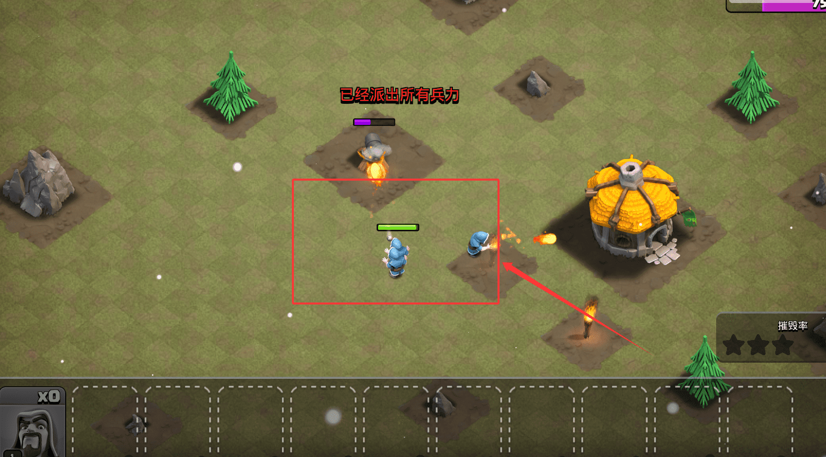 3、出兵过程中可以留意摧毁率的变化,它会在界面中实时显示,比如0%代表还没有造成破坏。