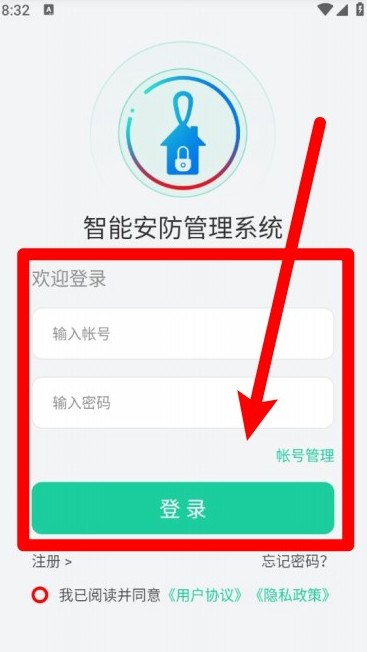 1、当您首次启动该软件时,请务必点击同意用户协议以进入登录页面。