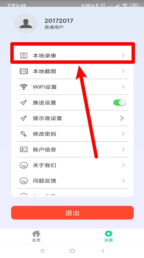 3.在设置页面中可选择“本地录像”以查看和管理存储在本地的视频记录文件。