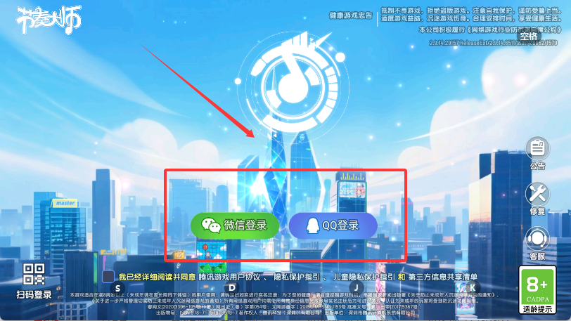 1、启动游戏,主登录界面清晰明了。在开始前,别忘了先点击按钮上方的“QQ大区”或类似选项,选择你想登录的大区。选好之后,再点击“开始游戏”按钮正式进入。