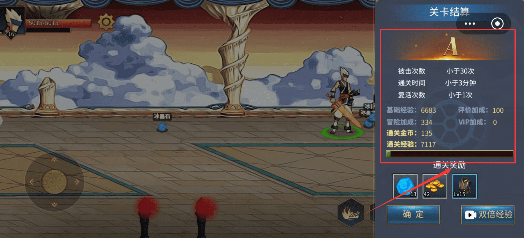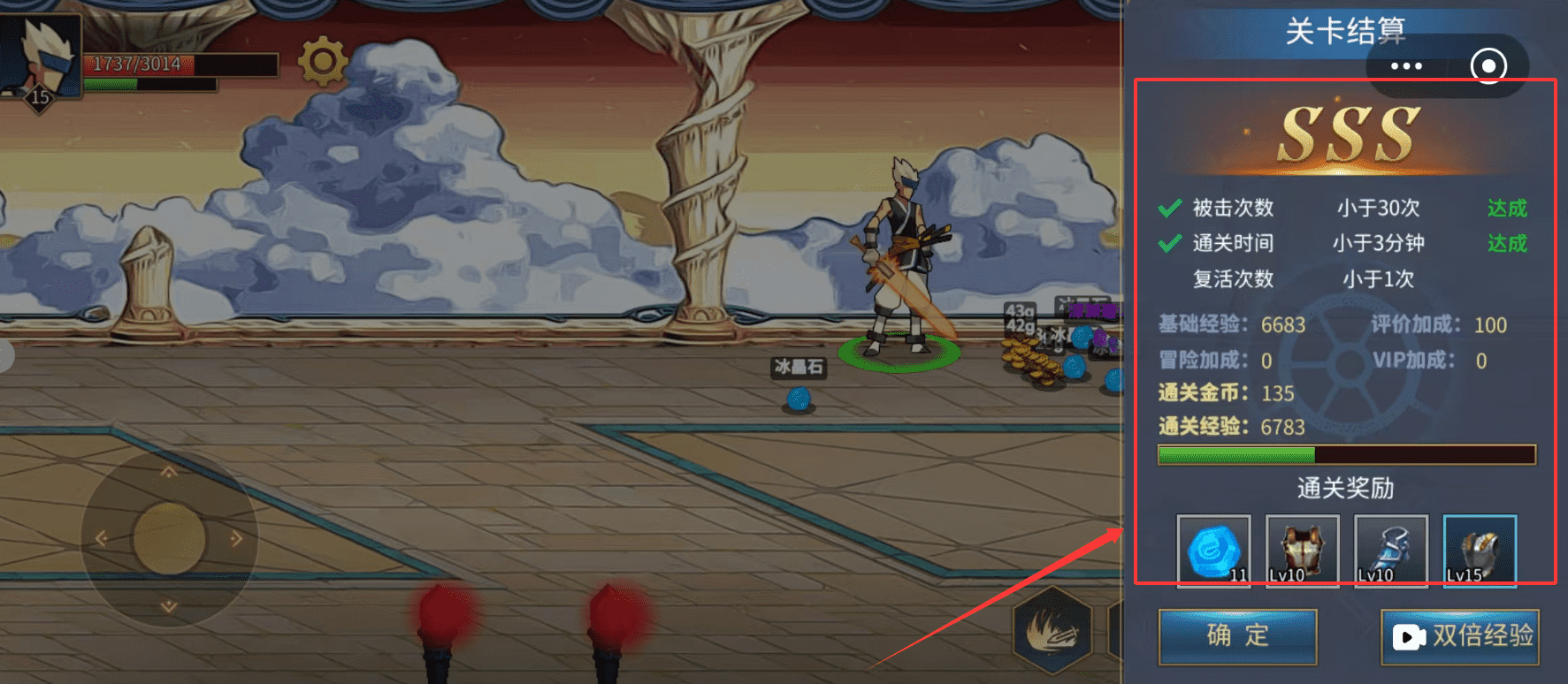 3、记得勾选“双倍经验”选项,这能让你的收益最大化。奖励界面通常会有一个“确定”按钮,点击后就能将经验与金币收入囊中啦。