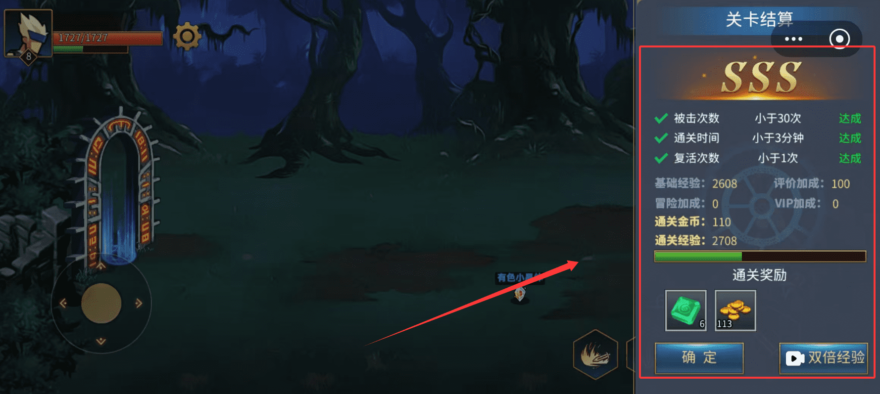 1、通关时间控制在3分钟内且不复活,这样能获得更多基础经验与金币,结算后记得领取双倍经验奖励,能加速升级哦。