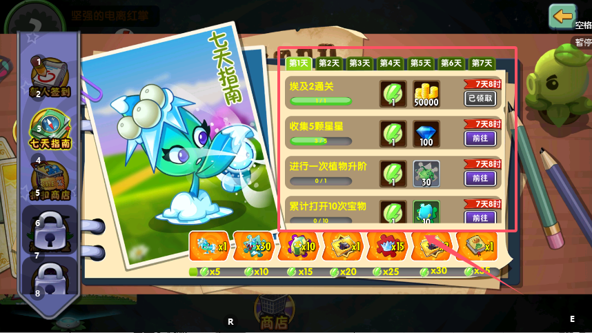 3、“七日签到”机制实现零成本资源获取,仅需每日登录便能领取寒冰射手碎片,集齐后合成的控场植物在游戏前期表现卓越,是提升阵容强度的最佳免费途径。