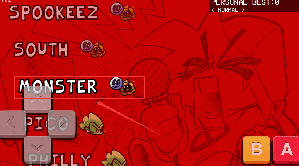 1、使用方向键或对应的操作键上下移动光标来选择你想挑战的曲目,比如从“SPOOKEEZ”开始,然后按下确认键进入难度选择。