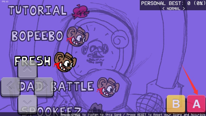 2、在模式与关卡选择界面中,点击A键确认进入具体的节奏对战场景画面。