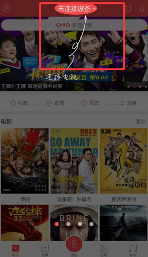 1、打开手机【CHiQ电视】。在【电视】栏里点页面右上方的连接标识将手机和电视连接(注意手机wifi要与电视wifi相同)