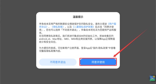 1、点击同意相关协议,完成授权后即可顺利进入软件。