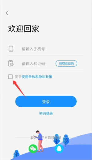 3、在登录页面勾选同意用户协议与隐私政策条款,进入身份验证步骤。