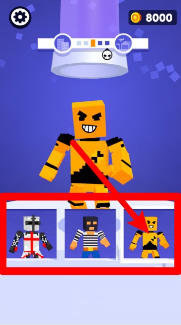 2.角色选择界面提供多种造型,玩家可使用金币解锁心仪的皮肤,让战斗中的方块英雄更具个性与独特风格。