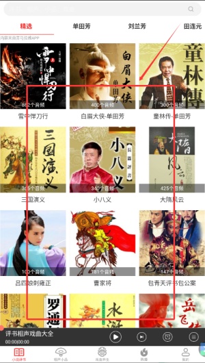 汇集各类评书作品,提供袁阔成、单田芳、刘兰芳、田连元、连丽如等众多评书表演艺术家的经典评书。