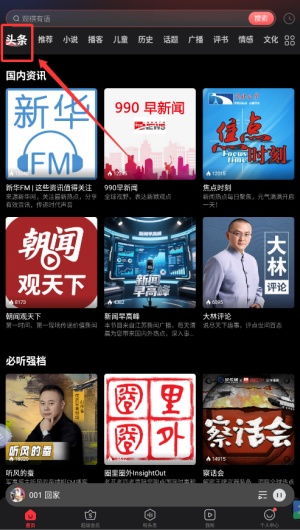 2、在头条列表中,点击选择您感兴趣的新闻头条进入倾听。