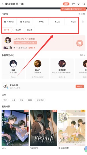 3、若书籍为多章节内容,请点击选集按钮选择具体收听章节。
