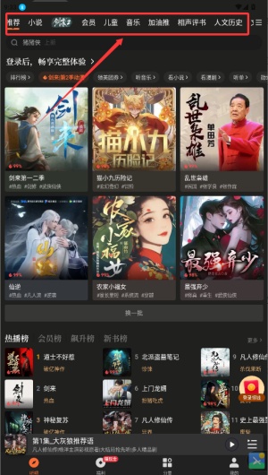 1、懒人听书作为国内领先的有声阅读平台,拥有超过十万册正版有声书资源,涵盖文学名著、网络小说、曲艺戏曲等十六个主要类别。