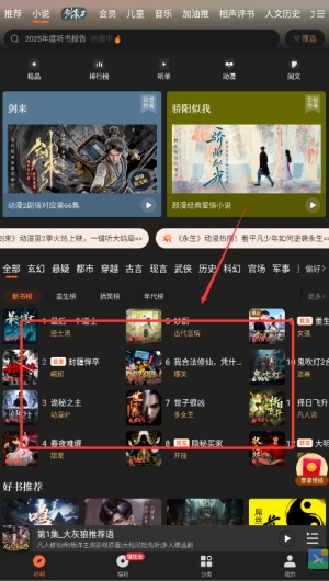 2、在书籍页面中,请点击分类标签选择您想收听的书籍种类。