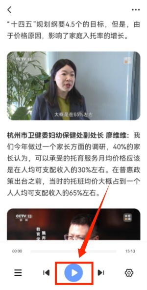 4、在文章页面点击语音图标,即可启动语音播报功能。