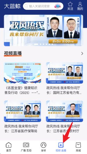 4、进入“视频·直播”页面,可观看政风热线等热门视频直播节目,并支持实时互动参与。