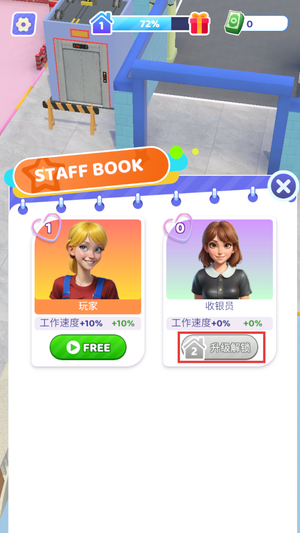 4、优先提升店铺等级以解锁收银员岗位,雇佣员工协助处理结账事务,减轻操作负担并加快服务效率推动经营流程顺畅运行。