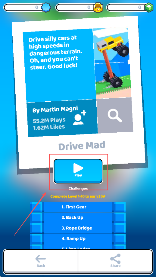 2、选择第一个基础关卡进行实际操作体验,通过实践熟悉游戏基本操作方式和关卡设计的基本原理要点。