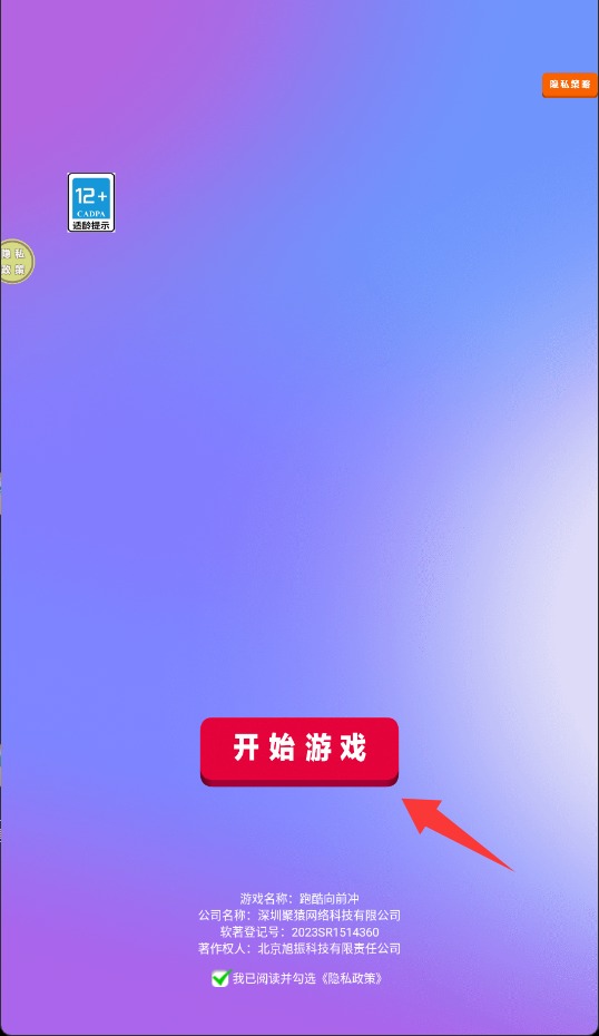 1、启动跑酷向前冲最新版应用程序后,在主界面点击"极速认证"按钮进入角色选择与技能配置界面。