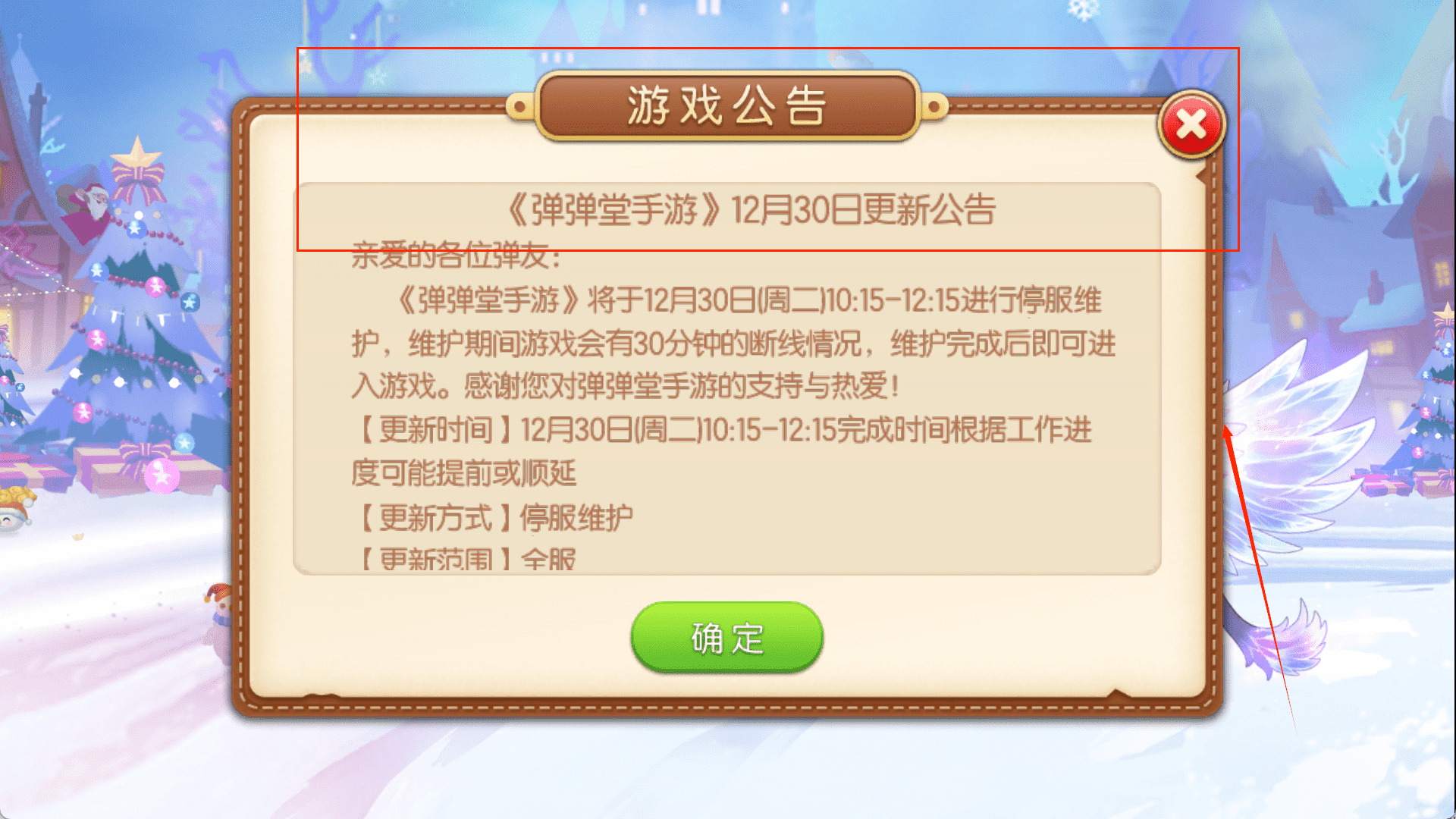 4、登录过程结束后,如果弹出维护通知,快速看一眼时间。在进入游戏主界面开始玩耍前,别忘了还有最后一个环节:拉到屏幕最底下,完成协议确认并查看当前的软件版本。