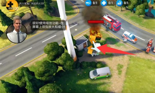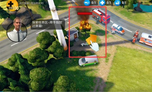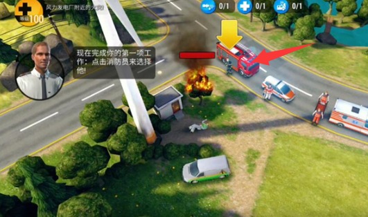 五:在选择好任务并进入后,你会看到在屏幕的左下角是你要派遣的救援车辆,在屏幕的中上方是你要完成的任务提示。