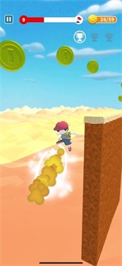 冲刺酷跑达人的场景比常规的跑酷游戏更加丰富,各式各样的户外场景随机出现,悬崖天空沙漠等等地形都会成为玩家的挑战赛道,玩家必须时刻把握好冲刺或跳跃的机会,避免掉入危险的地区。