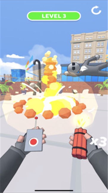 全炸了是一款十分休闲好玩的模拟爆炸游戏。休闲卡通版的3D游戏游戏场景,Q萌可爱的橡皮人角色形象,玩起来会非常的轻松舒适,充满了游戏趣味性。你的任务就是放置炸药,炸毁一切。