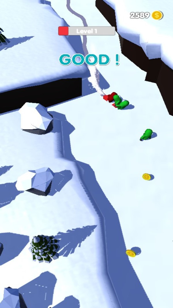 1、游戏真实模拟了滑雪的场景,玩家要灵活躲避各种障碍物。