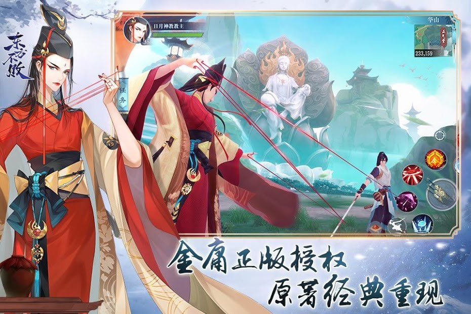 金庸先生经典武侠小说笑傲江湖正版授权,原著剧情经典复原,福威镖局灭门、决战东方不败等经典画面逐个重现,更有超百万字原创剧情,让你随时随刻置身江湖!