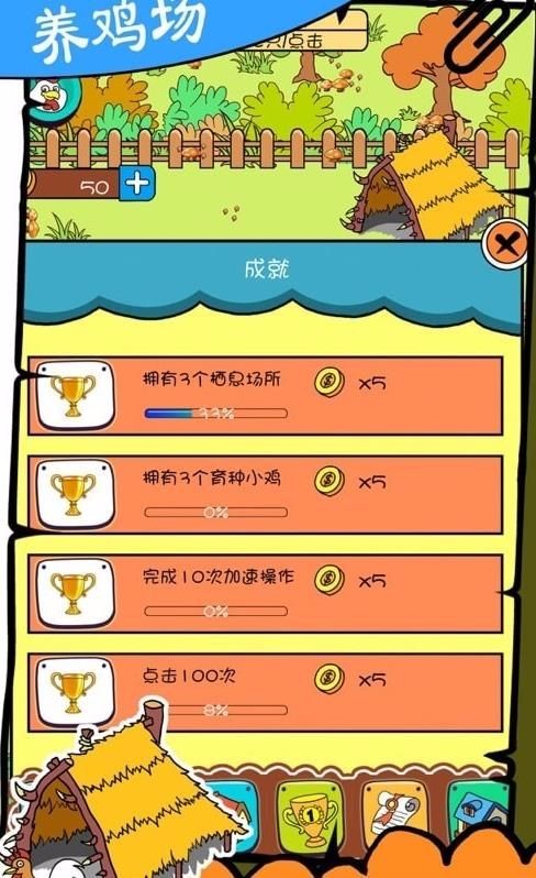 完成成就能给你金币,让你不用花钱也能轻松获得高级的鸡;