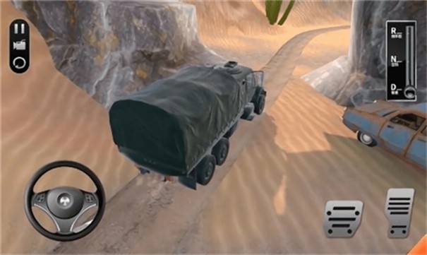 3、使用虚拟按钮移动,或使用方向盘轻松移动卡车,或使用陀螺仪控制移动;