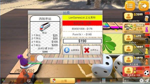 游戏中玩家将会和以前在家中游玩的大富翁一样,尽情使用自己的智慧和运气,让自己尽可能地占到更多的地皮,如果同样的地皮让自己第二次到达的话,玩家还可以选择加盖,加盖了之后其他玩家过来需要付的钱也会翻倍,让人一下子就破产,非常有意思,快来游戏中体验吧。