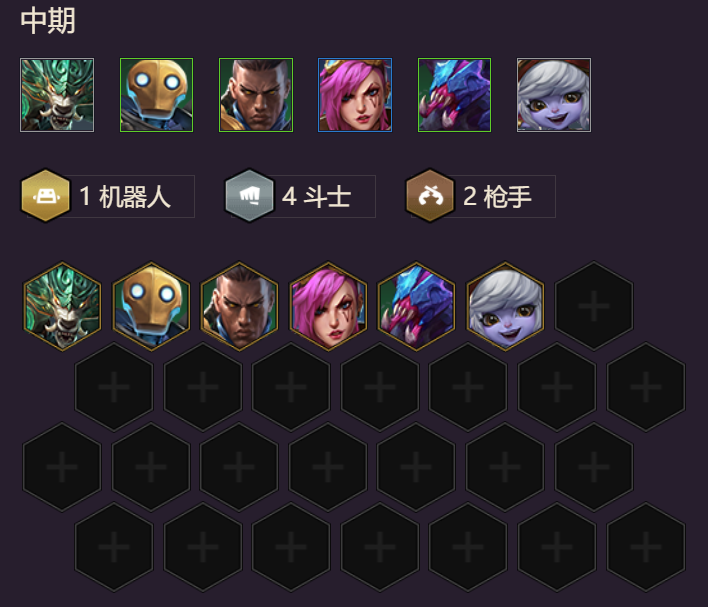阵容:南天之怒+蒸汽机器人+驱邪圣枪+皮城执法官+虚空遁地兽+麦林火炮