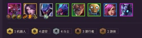 2、羁绊效果: 1机器人+4虚空+4斗士+3潜行者+2游侠