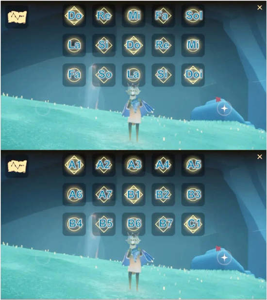 下图为琴键对应的代号。