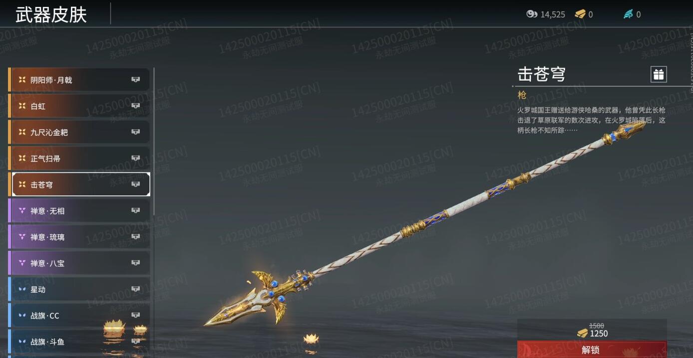 1、击苍穹的价格在1250金砖,价格还是有点高;