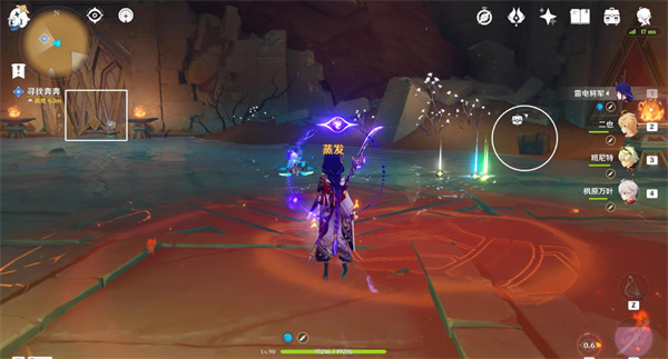 1、往地图的南方向走,深入探索遗迹。在营地获得圣章石,利用四叶印,获得草神瞳二,开启机关七,打开遗迹门。