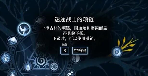 5、获得迷途战士的项链之后,下蹲时可以使用滑铲,按住S、空格键;